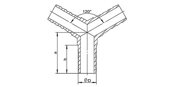 Ajustement avec trois ouvertures, un wye est utilisé pour créer des lignes de branche. Les Wyes sont similaires aux t-shirts, sauf que la ligne de branche est inclinée pour réduire les frottements et les turbulences qui pourraient entraver l'écoulement. Le tuyau du connecteur Y peut être plus pratique car il a un meilleur système de drainage et peut être plus facile à installer en raison des limitations de l'espace.