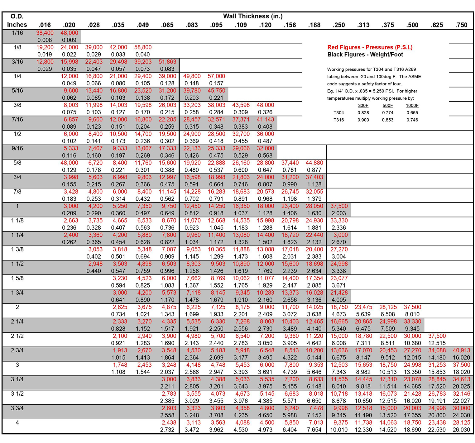 Tubes en acier inoxydable Pressions et poids de l'éclatement théorique
